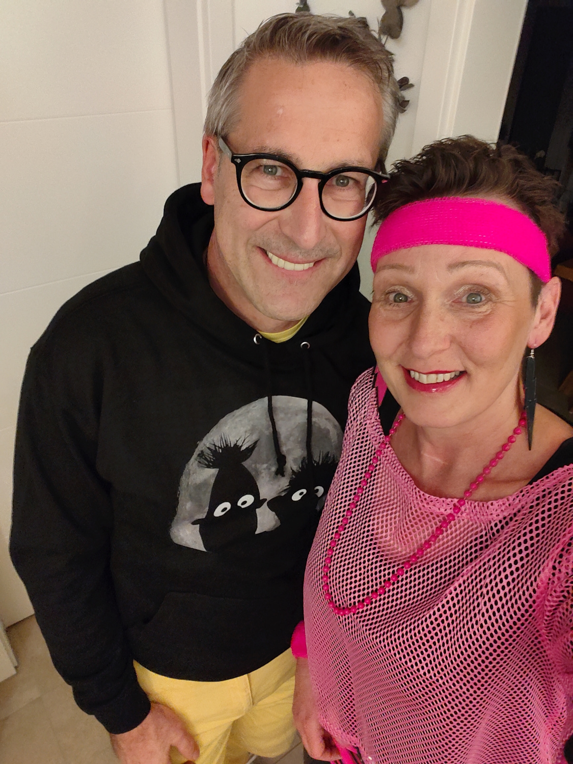 Letzten Samstag waren wir auf dem Geburtstag einer Freundin eingeladen – eine Mottoparty. Achtziger Jahre und ich hatte eigentlich gar keine richtige Lust, auch wegen meiner Erkältung. Aber ich wollte meine Freundin nicht versetzen und wir haben uns extra dafür ein paar Accessoires im achtziger Stil gekauft. Schon beim Anziehen zu Hause kam die Vorfreude darauf, ein tolles Motto. Alle Gäste waren tatsächlich verkleidet und auch die Musik war genau mein Ding. Back to the 80´s. Erinnerungen an meine Jugend und eine unbeschwerte Zeit wurden wieder wach. Wir haben viel getanzt und hatten wirklich Spaß. Nur meine Stimme verschwand über den Abend komplett – vom Mitsingen und lauten Reden. Der darauffolgende Tag war dementsprechend ruhig, aufgrund des Stimmverlustes. Hat meinen Mann sicher nicht gestört.